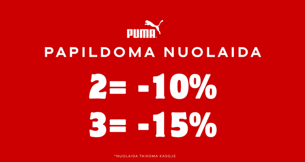 Pirk daugiau – mokėk mažiau. Pirk 2 prekes ir gauk papildomą 10% nuolaidą, 3 ar daugiau prekių – 15% nuolaidą.*