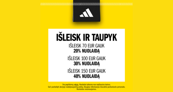 išleisk 70 €, gauk 20% nuolaidą;